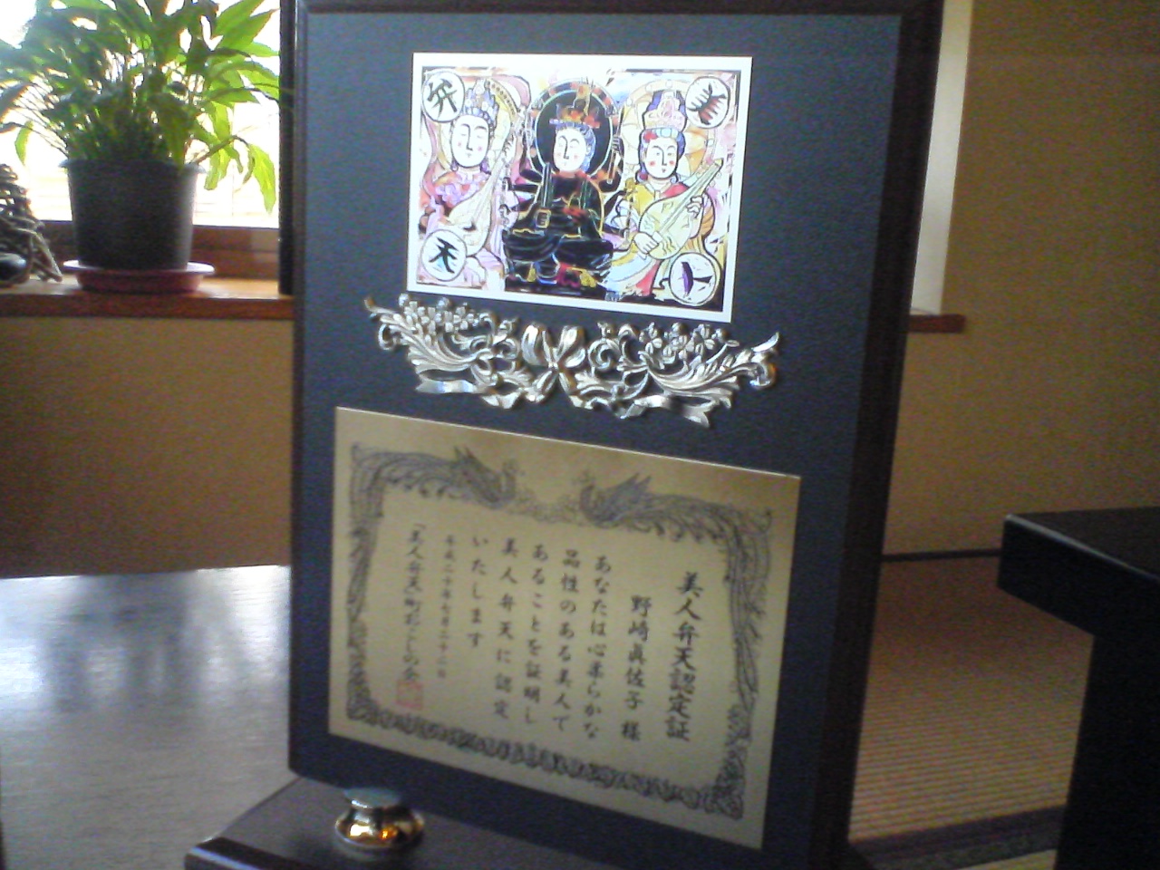 あなたは心柔らかな品性のある美人であることを証明し 美人弁天に認定いたします。